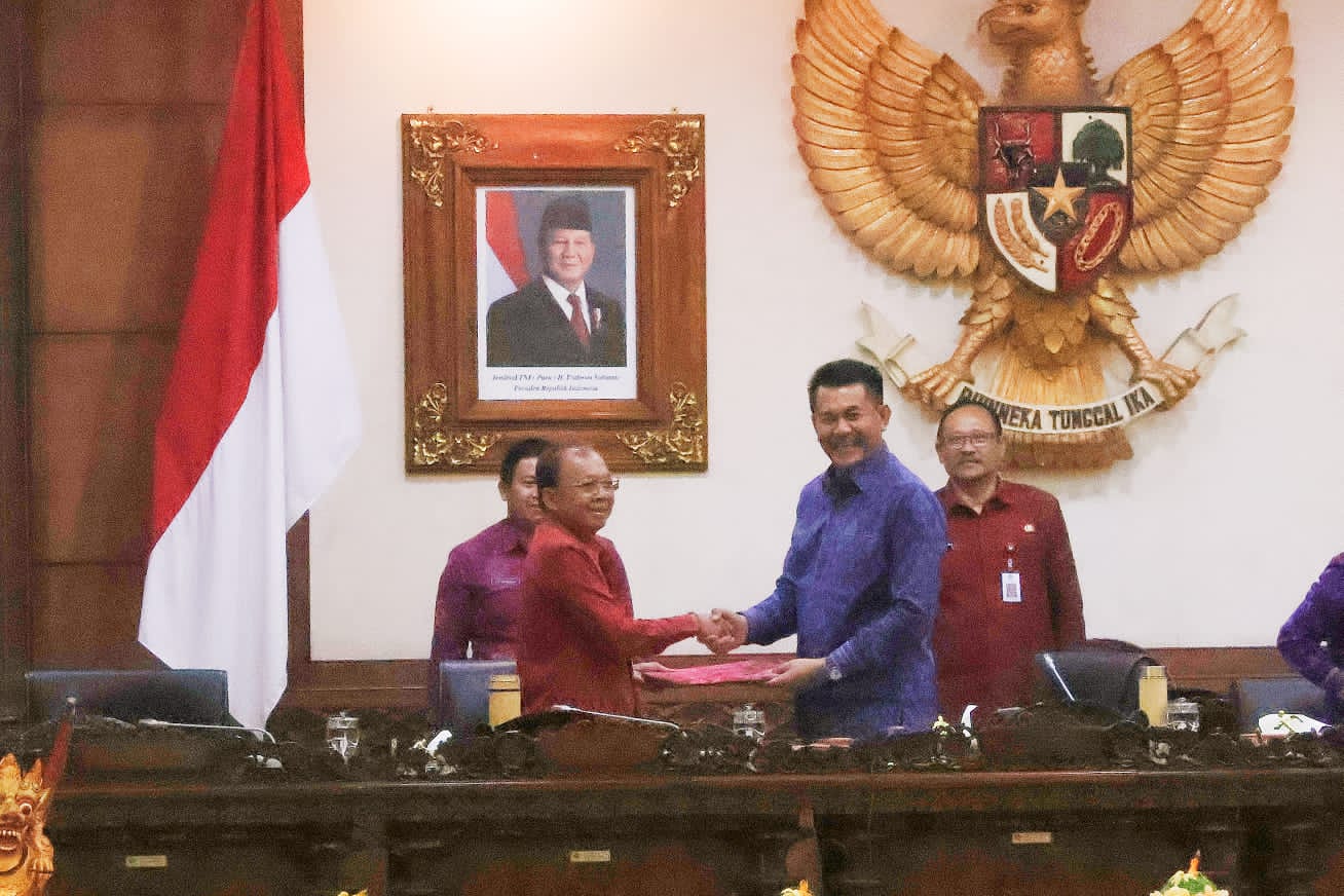 DENPASAR OKEBALI.COM – Gubernur Bali Wayan Koster menyampaikan apresiasi kepada seluruh anggota DPRD Provinsi Bali karena telah merampungkan pembahasan serta menyetujui Raperda Provinsi Bali tentang Perubahan Atas Peraturan Daerah Nomor 6 Tahun 2023 tentang Pungutan Bagi Wisatawan Asing Untuk Pelindungan Kebudayaan dan Lingkungan Alam Bali, selanjutnya akan disampaikan kepada Pemerintah Pusat untuk difasilitasi sesuai ketentuan Peraturan Perundang-undangan.
