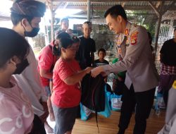 Kapolres Buleleng AKBP I Made Dhanuardana, S.I.K., M.H., yang menyerahkan langsung bantuan sembako kepada lima orang lansia yang tidak mampu dan 30 anak-anak yatim piatu diberikan sembako dan juga tas gendong yang dapat dipergunakan baik untuk ke sekolah maupun untuk hal-hal lain.