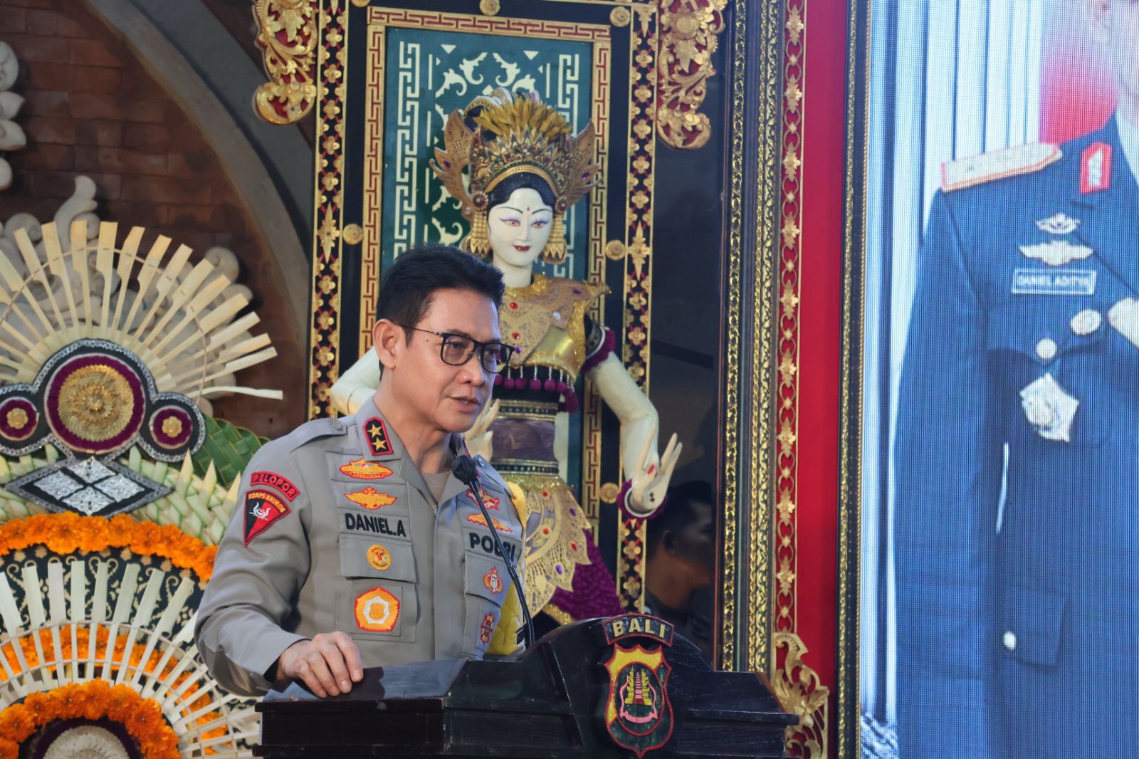 Kapolda Bali, Irjen. Pol. Daniel Adityajaya, S.H., S.I.K., M.Si. memimpin upacara serah terima jabatan (Sertijab) Wakapolda Bali dari Brigjen. Pol. I Komang Sandi Arsana, S.I.K, M.H. kepada Brigjen. Pol. I Made Astawa, S.I.K., di Gedung Presisi Mapolda Bali, Kamis(5/2/2026).
