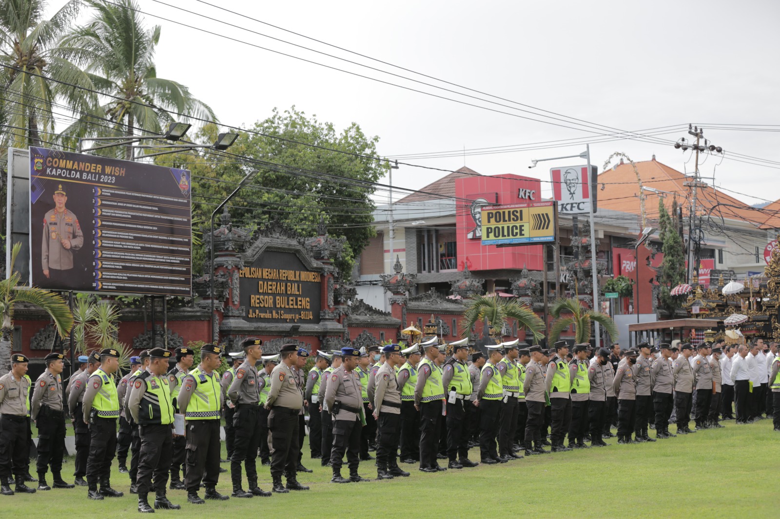 Dalam rangka menciptakan kondisi menjelang dilaksanakan operasi Ketupat Agung 2023, Polres Buleleng mempersiapkannya dengan meningkatkan kegiatan Kepolisian dengan Kegiatan Rutin Yang Ditingkatkan (KRYD). Hal ini ditunjukkan dengan adanya apel kesiapan pasukan KRYD yang dilaksanakan pada hari ini Senin (10/4/2023) di halaman Mapolres Buleleng yang dipimpin langsung Waka Polres Buleleng KOMPOL Yusak Agustinus Sooar, S.I.K.