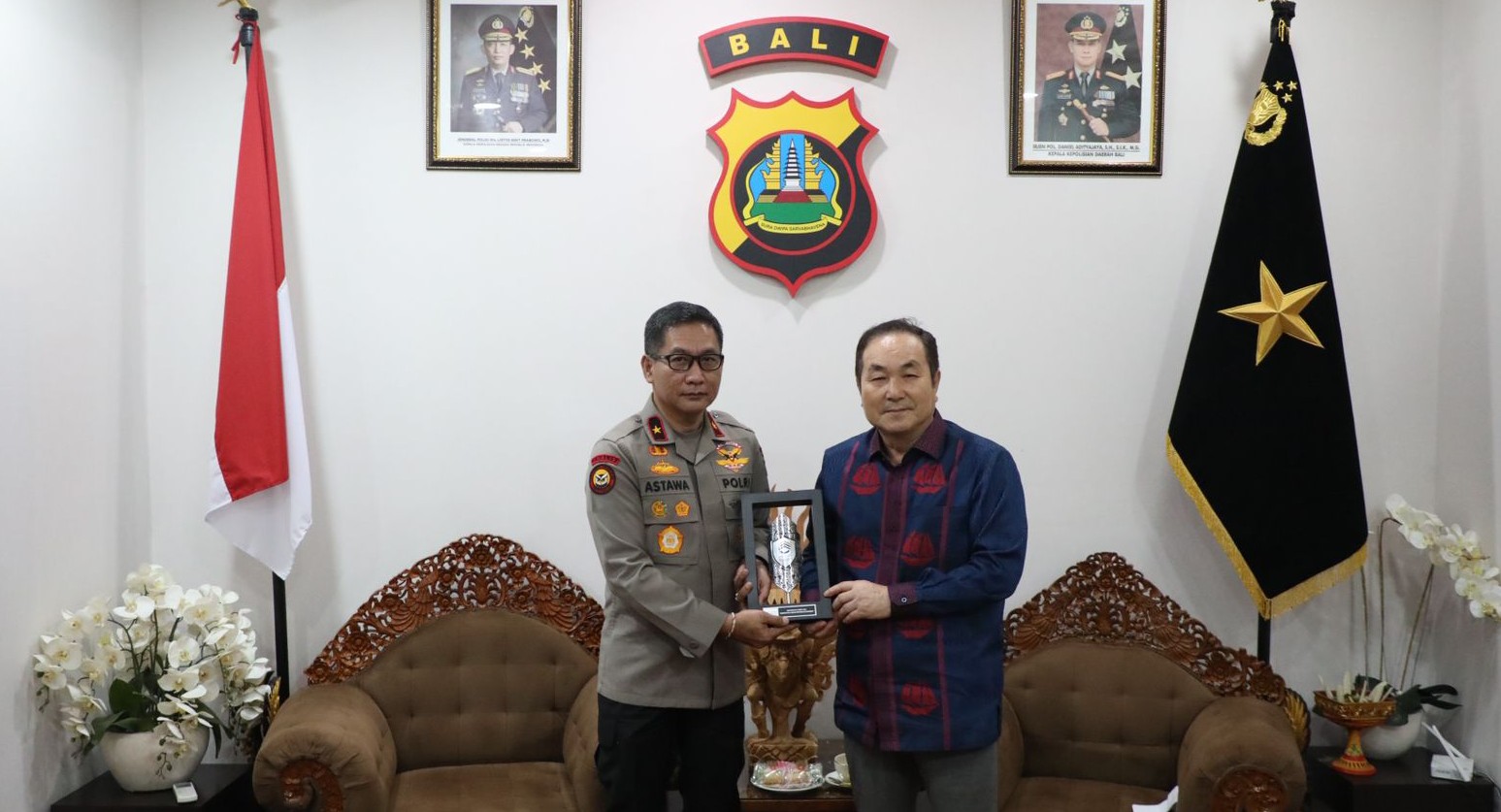 —Wakapolda Bali Brigjen Pol. I Made Astawa, S.I.K., menerima kunjungan tim dari Universitas Siber Asia pada Jumat (17/4/2026) siang di ruang tamu Wakapolda Bali.